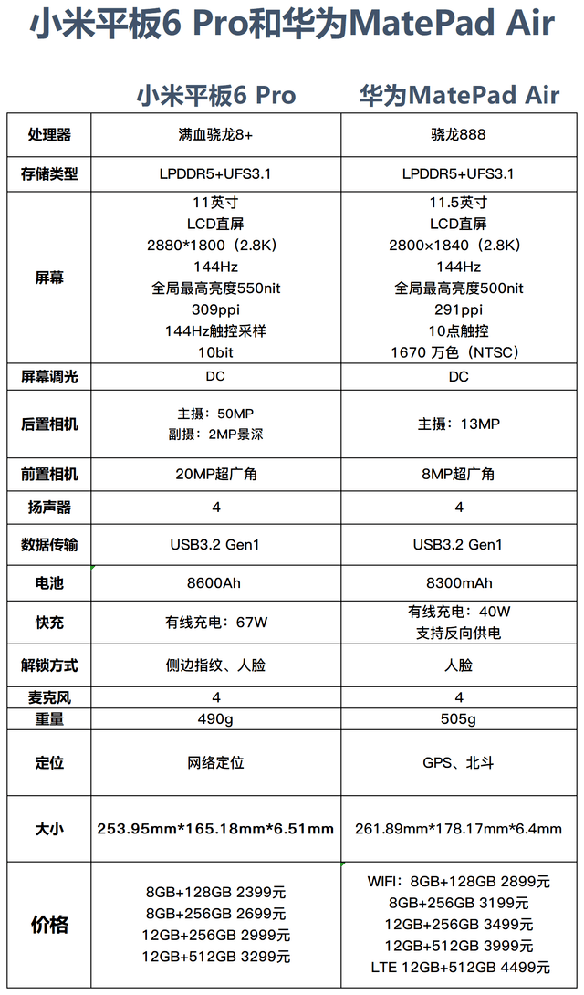 近日,洛图科技发布的2023年一季度中国市场平板报告显示,苹果、华为、小米排在前三位。在这三者的里,华为平板的品类最为多样化,覆盖的价位广。5月18日,华为又发布了平板新品类——华为MatePad Air,这款平板到底值不值得购买呢?下面用华为MatePad Air和小米平板6 Pro做一个对比。
