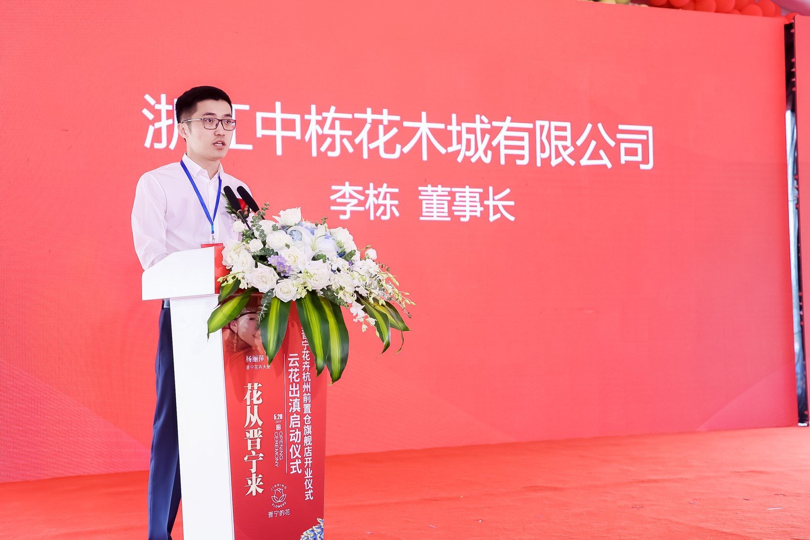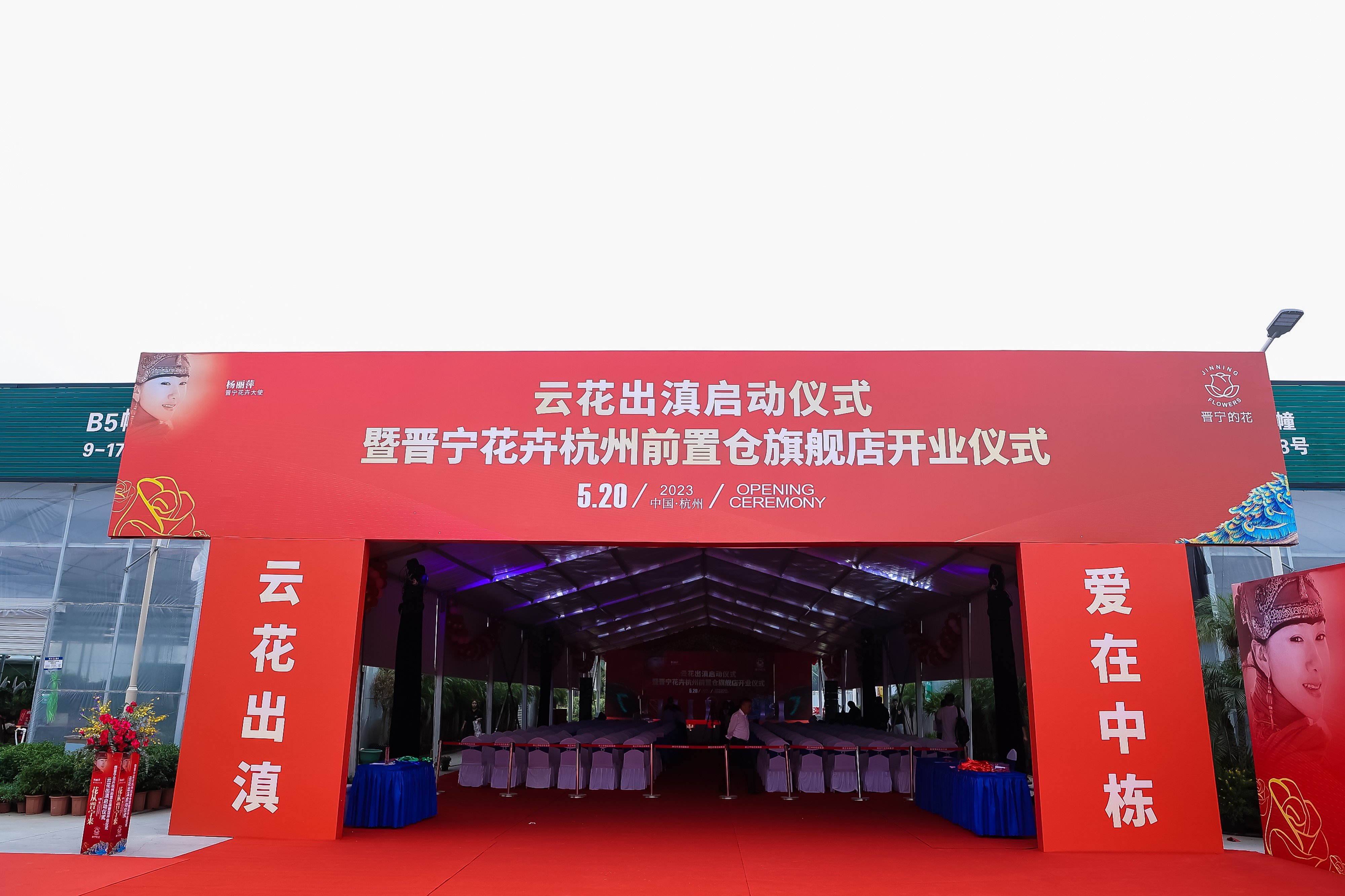 轻舞飞扬鼓乐鸣,张灯结彩迎朋宾。五彩祥云空中飘,天涯飞来金翅鸟。2023年5月20日,云花出滇启动仪式暨晋宁花卉杭州前置仓旗舰店开业仪式在杭州中栋国际花木城举办。
