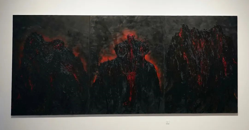 在“多维景观”单元中,观众可以看到很多知名国外艺术家的作品。安尼施·卡普尔(Anish Kapoor)在2019年于中央美术学院美术馆及太庙美术馆两处同时推出他在中国的首次美术馆个展,他作为雕塑家的身份最为人熟知。而此次展览中展出他的布面油画作品《生命的势能》,通过具有强烈表现力的图像,勾起人们对祭祀、宗教典礼和湮灭等原始仪式的想象,并且展现出艺术家对于自然景观和肉血之躯互相融合又互相排斥的感受。