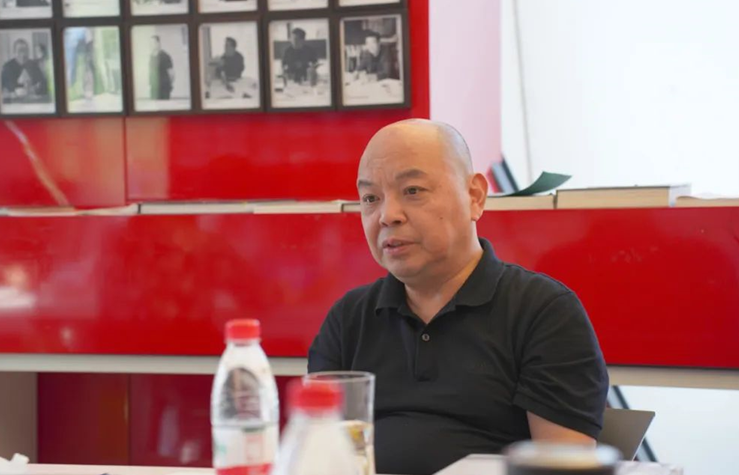 ▲ 合美术馆执行馆长鲁虹(右)和参展艺术家方力钧(左)
