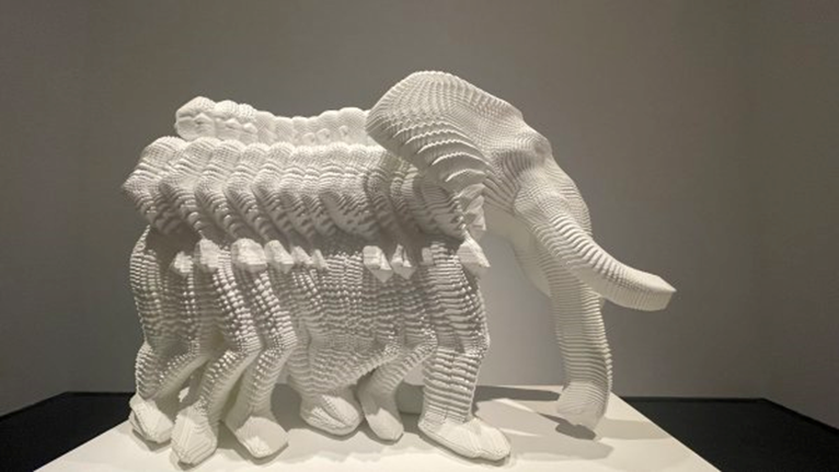 ▲ “开放姿态”展览现场中缪晓春作品《新新大象》