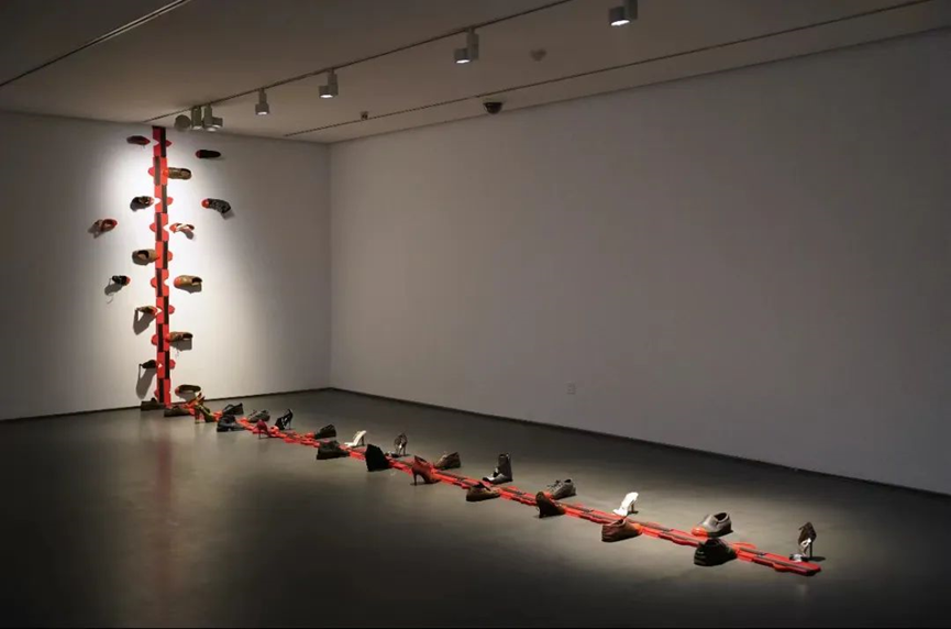 ▲ 界线,塑料、鞋、颜料,尺寸可变,傅中望,2022