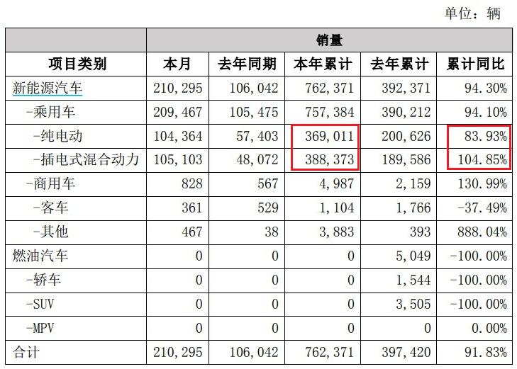 不仅仅是新势力如此,新能车销量第一的比亚迪,同样混动卖的比纯电好。
