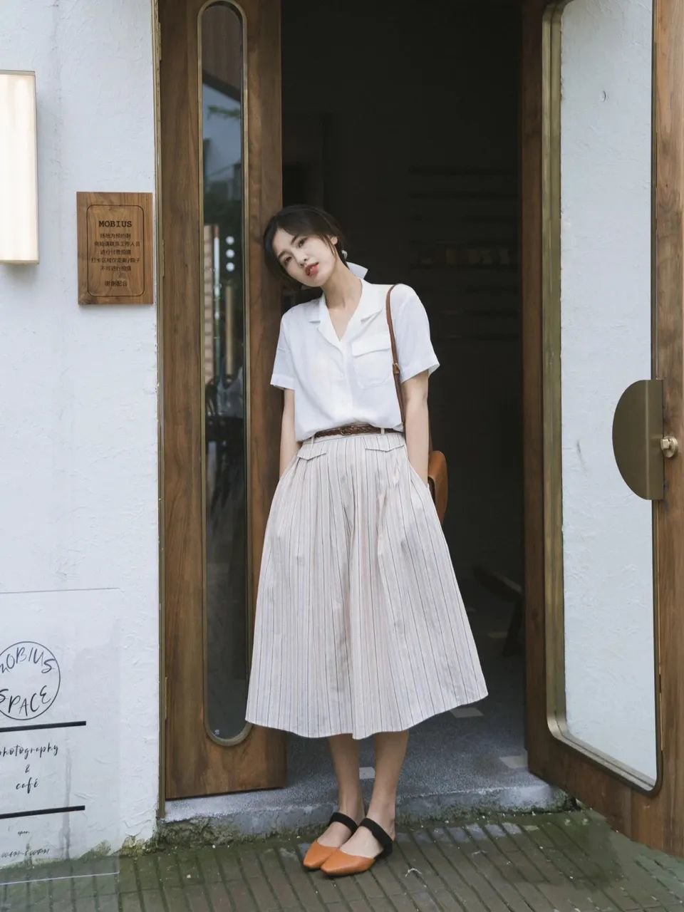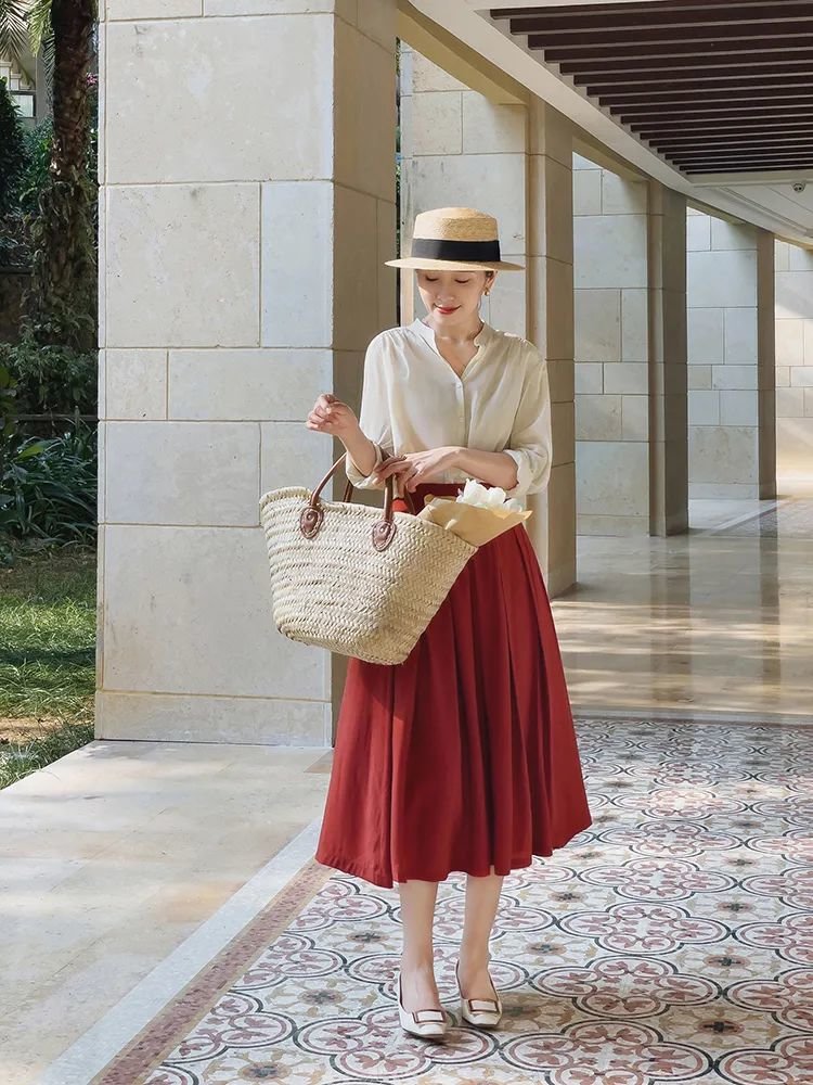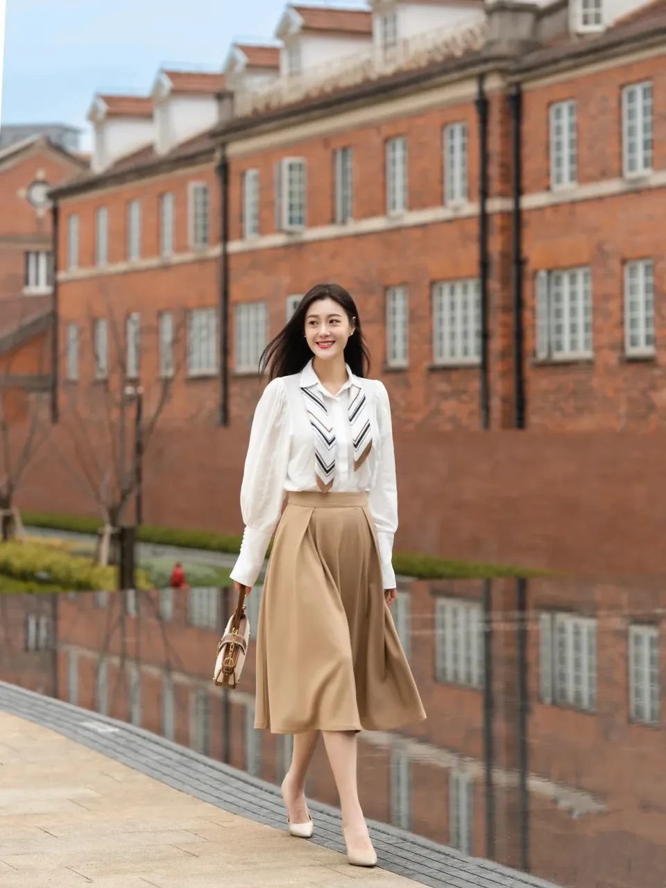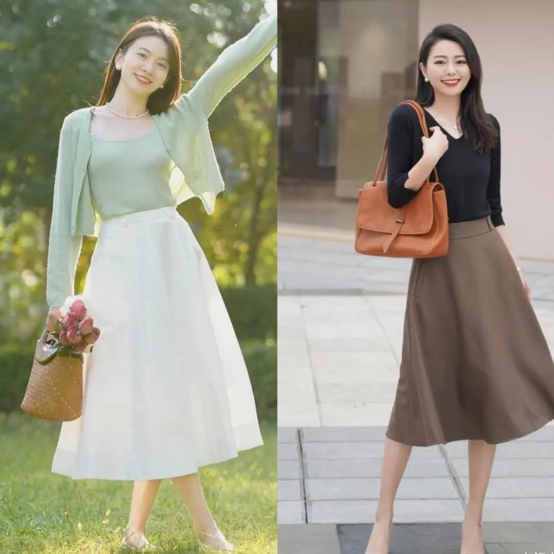 伞裙的版型比较适合下半身偏胖、腰粗胯大的女生,整体较为宽松,包容性较强,穿上伞裙之后能够更轻松地显瘦,裙摆之处比较宽大,能够遮盖住大腿粗和小腿粗等问题,对于矮个子女生来讲,有一定轮廓感的set群也是非常友好的,不会显矮。
