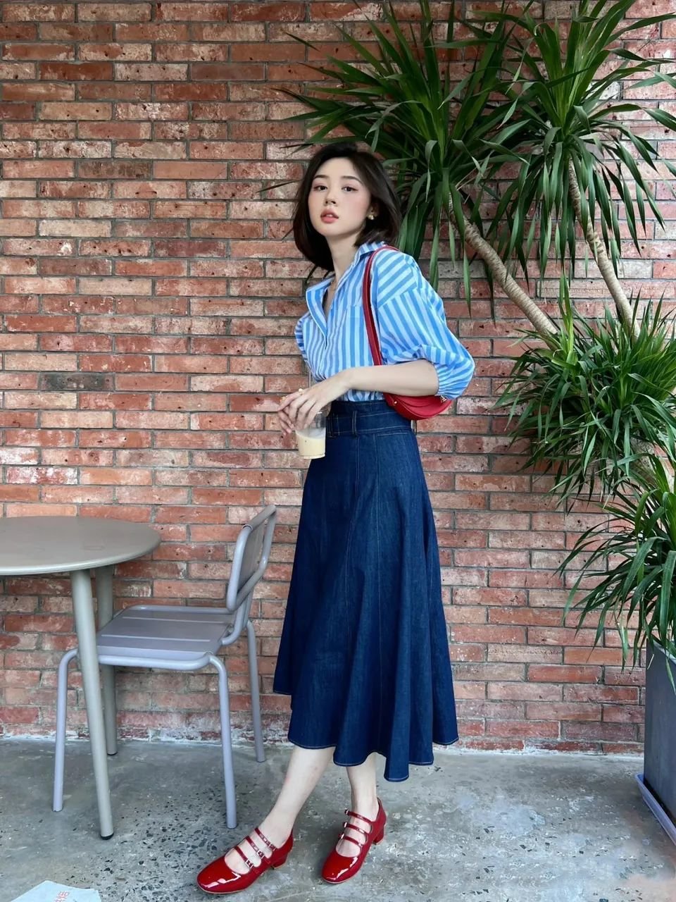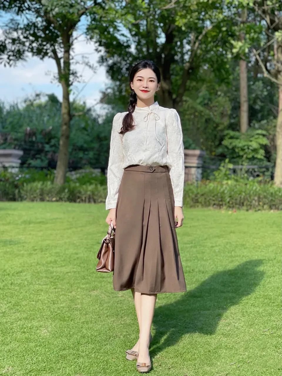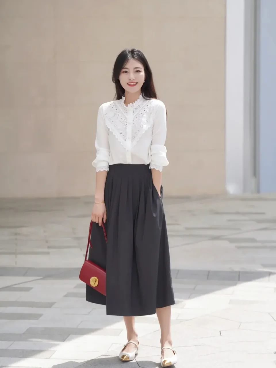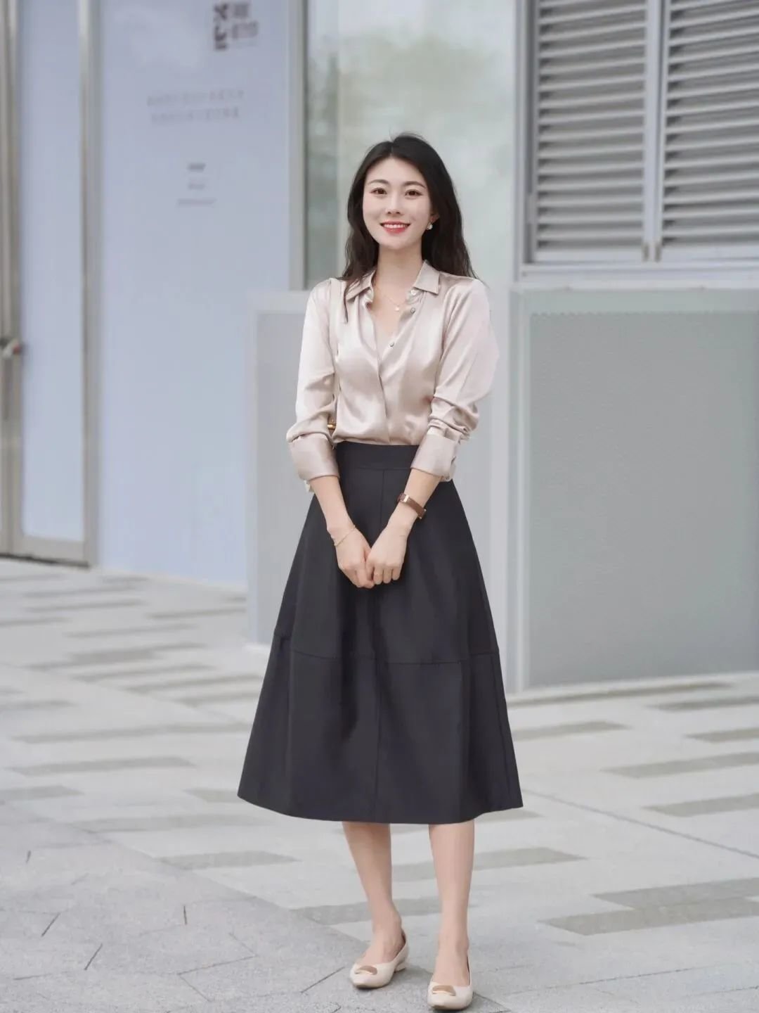 伞裙的版型比较适合下半身偏胖、腰粗胯大的女生,整体较为宽松,包容性较强,穿上伞裙之后能够更轻松地显瘦,裙摆之处比较宽大,能够遮盖住大腿粗和小腿粗等问题,对于矮个子女生来讲,有一定轮廓感的set群也是非常友好的,不会显矮。