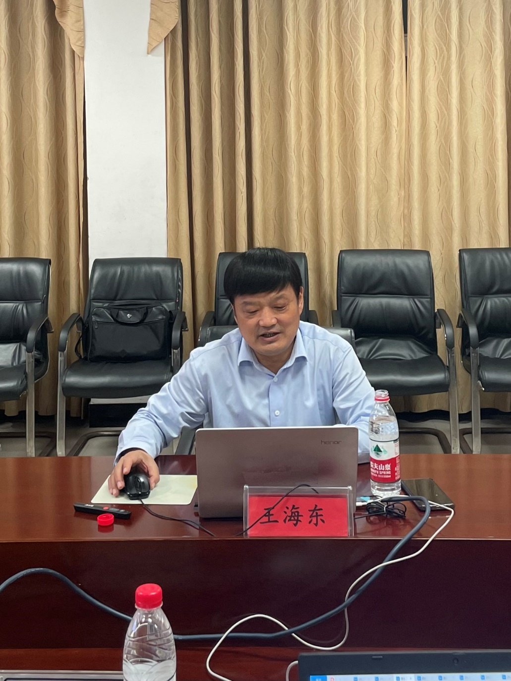 参观完毕后,王海东向调研组进行了题为《四轮驱动特色创新,全面育人花开果硕》的工作汇报。王海东从素质教育卓越发展、学校特色示范发展、教师集群全面发展、成果转化持续发展、基地实验校发展等方面总结了学校的教育科研工作成果:创建“三维六元”学本体系,四轮驱动素质教育卓越发展;创建“科研兴教兴校”模式,规划调动学校特色示范发展;创立“归本立体研修”机制,整体带动教师集群全面发展;创设技术升级优化环境,融合联动转化成果持续发展;创造教育教学管理效益,科研推动基地实验校发展。他表示,漯河高中以思想立魂、课堂立命、科研立心、立德树人引领育人方式改革,社团强能、活动赋能、综合拓能、五育全能促进学校多样发展。