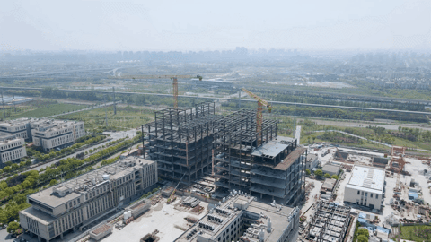 近日,张江实验室研发大楼项目主体结构封顶。