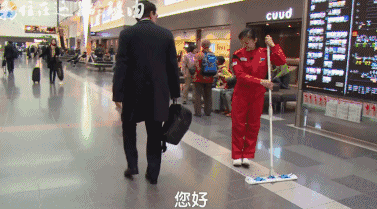 打扫卫生时,很多人会对她说:“您好,辛苦了。”