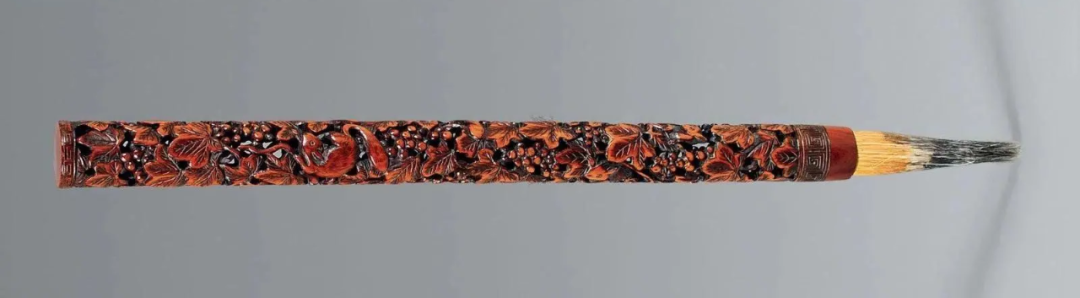 2010年12月9日,北京市古天2010秋季拍卖会,明代象牙透雕葡萄松鼠毛笔,成交价:人民币3,024,000元。