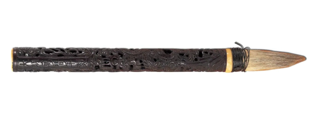 2008年12月7日,北京翰海2008秋季拍卖会,明万历紫檀镂雕龙凤毛笔木雕,长22cm,成交价:人民币403,200元。