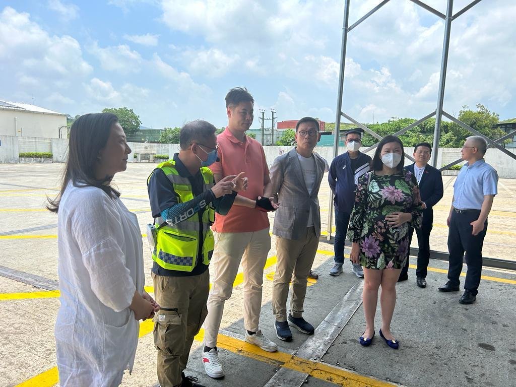 港区全国人大代表召集人陈勇、新界西南立法会议员陈恒镔、选举委员会界别立法会议员葛珮帆与林琳及渔农界立法会议员何俊贤一同考察一期、二期验车中心和场地验车情况,还听取中检公司对“港车北上”的介绍与演练。