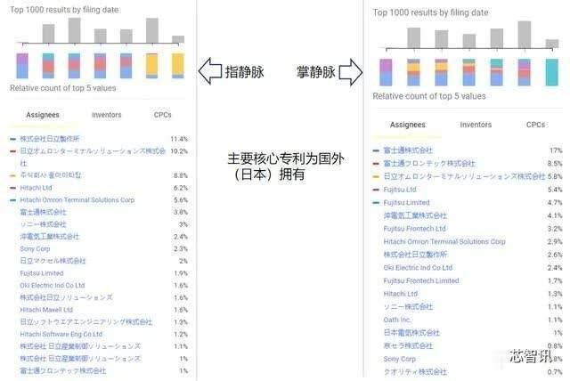 1、专利挑战:在静脉识别技术领域,日本企业布局较早,并已得到广泛应用。根据研究机构的数据显示,不论是在指静脉还是掌静脉领域,专利排名前20企业基本都是日本的企业。