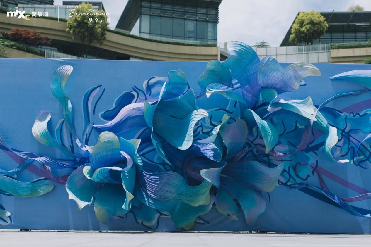 2023年5月,成都万象城迎来了第11周年。此次周年庆活动将持续1个月,以“Live we11”为主题,展开对城市生活的美好想象。5月14日,「Live we11,bloom well」11周年大型系列主题装置于万象广场盛大启幕。此次装置特邀中外艺术家,借笔于自然,呈现对城市生活方式与生命力的思考。