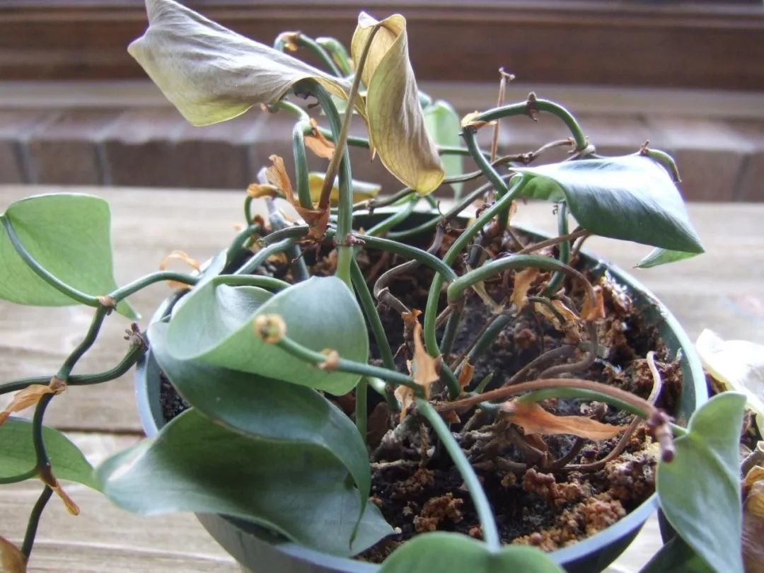 如果是土壤长期干旱,导致植物枝叶枯萎的,那就还更容易挽救了,只需要把枯萎的枝叶清除干净,及时浇透水,要多次缓慢浇水,或直接将盆栽放在清水中浸泡半小时,再拿起来沥干水分,大概过大半天或一天左右,植物就能恢复比较健康的状态了。