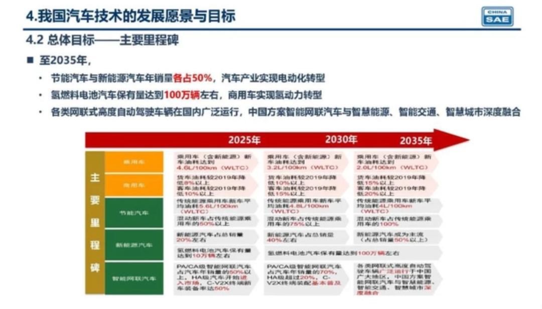 2030年传统能源乘用车新车平均油耗需要达到4.8L/100km,届时混动新车占传统乘用车75%以上。到2035年,我国传统能源乘用车新车平均油耗需要达到4L/100km,并且所有新车均为混动车型。