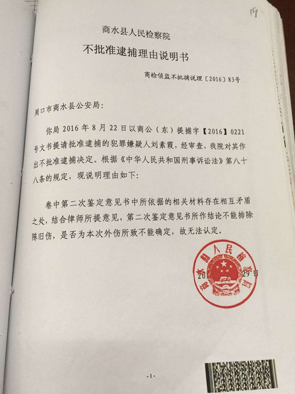2016年8月,商水县检察院曾作出不批准逮捕决定。