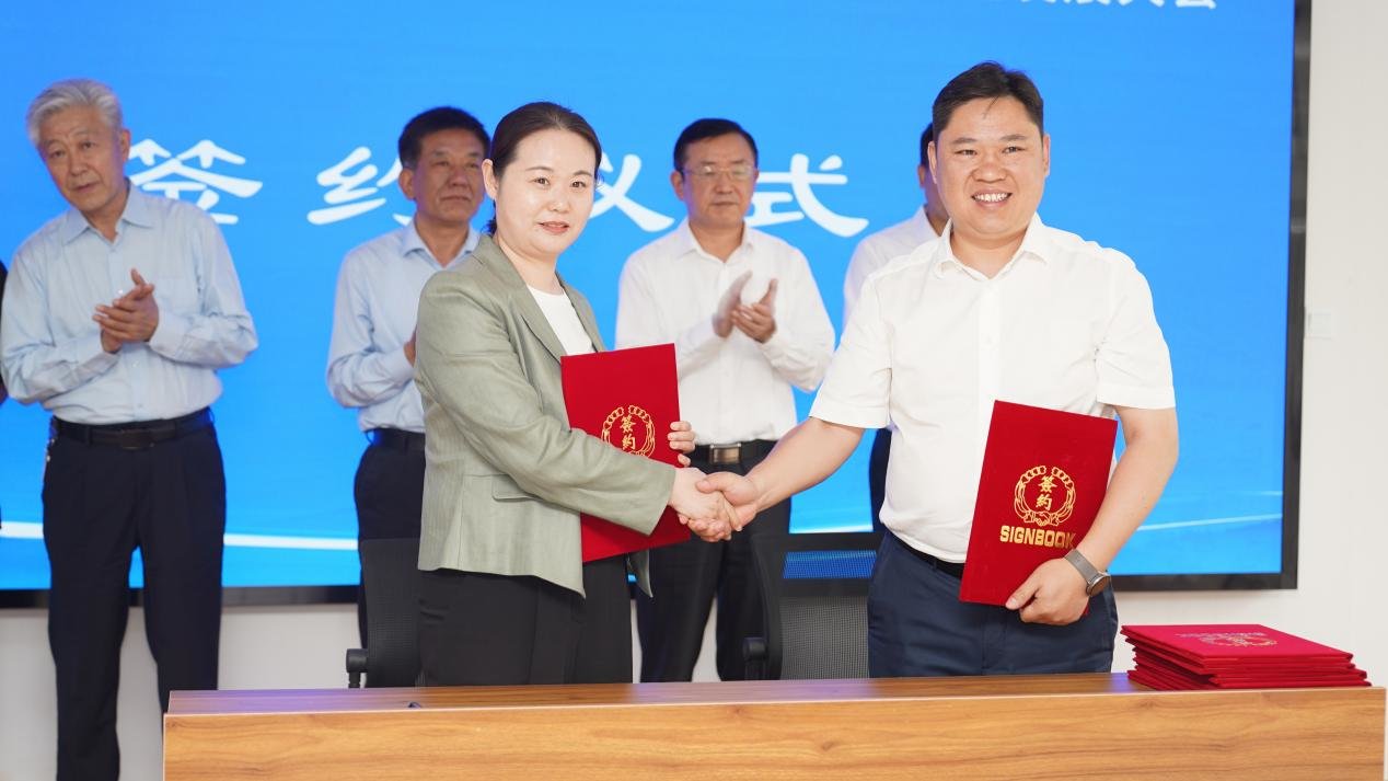 济宁档案馆副馆长秦岭与玉堂酱园总经理常贵东签约