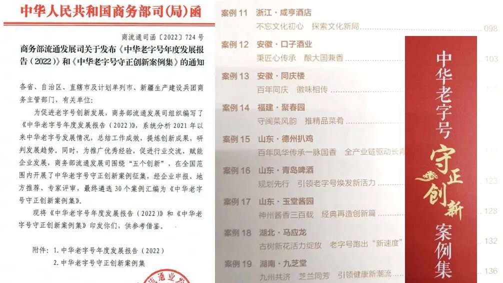 山东省商务厅副厅长王洪平、省商务厅服务贸易和商贸发展处副处长魏文胜、济宁市档案馆馆长杜宏春、山东省饭店协会常务副会长满长征、山东玉堂酱园有限责任公司董事长何景春共同上台见证签约仪式。