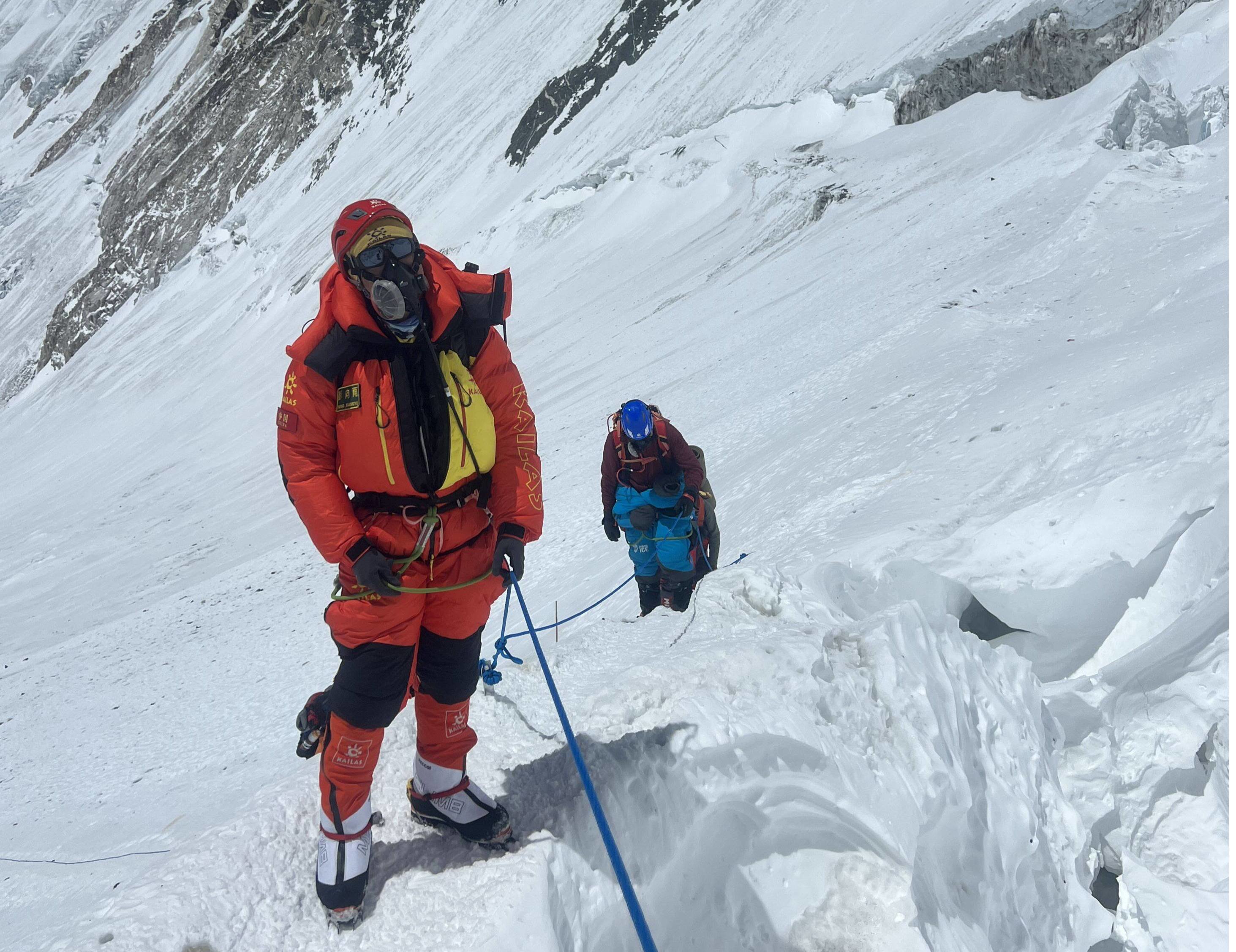 “虽然攀登前已经做好了准备,但还是出现了各种意外。我在希拉里台阶上去的时候出现了滑坠,幸好被向导及时拉住,这是我离死亡最近的一次,非常惊险。”彭向雨说,“还有就是当我们攀登到八千七百米左右的位置,我向导的氧气面罩,因为天气极度严寒而被冻住,不能正常工作只能下撤。没想到正当我们准备下撤,遇到一名下撤的向导,和他们一番沟通后,互换了面罩,这样我才得以继续完成了攀登。”
