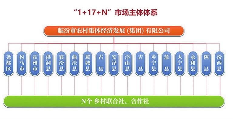 2022年以来,临汾市深入学习贯彻党的二十大精神和习近平总书记考察调研山西重要讲话重要指示精神,落实山西省委、省政府工作部署,努力在思维观念、体制机制、路径举措上创新突破,探索实施“党建引领+市场推动”,市县乡村四级联动工作机制,在市级层面组建临汾市农村集体经济发展(集团)有限责任公司,引导县乡村各级规范组建县级公司、乡镇集体经济联合社和村集体合作社,在全市域构建起“1+17+N”市场主体体系,努力以高质量党建引领农村集体经济高质量发展。