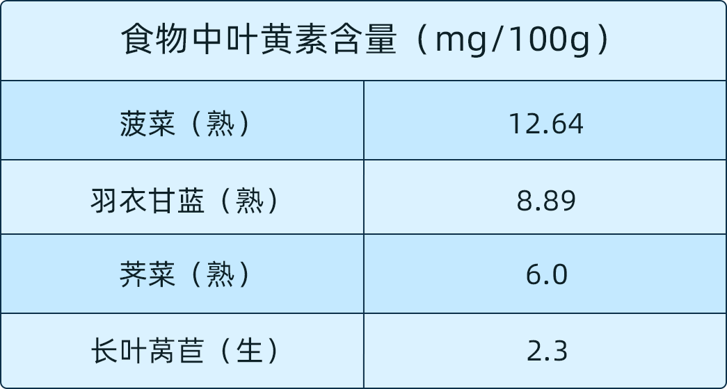 叶黄素有滤光和抗氧化的作用,对眼睛非常重要。首先视网膜中的叶黄素可以吸收蓝光,保护视网膜。其次,高达52%的黄斑病变患者,体内的叶黄素完全消失,人体又无法合成叶黄素,因此多吃一点富含叶黄素的食物也很重要。
