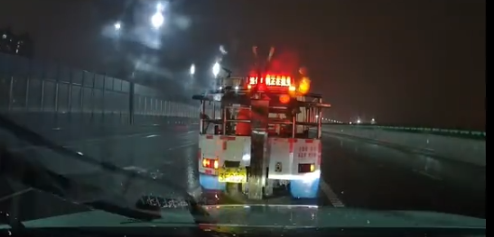 交警很快就到了现场,全程淋雨处置此事,非常负责、专业。由于当时天下着雨,小张还主动给交警打了伞。之后,现场交通在第一时间得以恢复,基本没有影响晚高峰时段的正常通行。