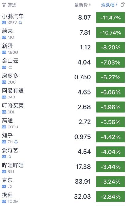 此外,中概股普遍下跌。小鹏业绩不及预期,带着蔚来一起下跌。小鹏汽车5月24日晚间公告,一季度总收入为40.3亿元,同比下降45.9%;净利亏损23.4亿元,去年同期净亏损17亿元。一季度毛利率为1.7%,去年同期毛利率为12.2%。