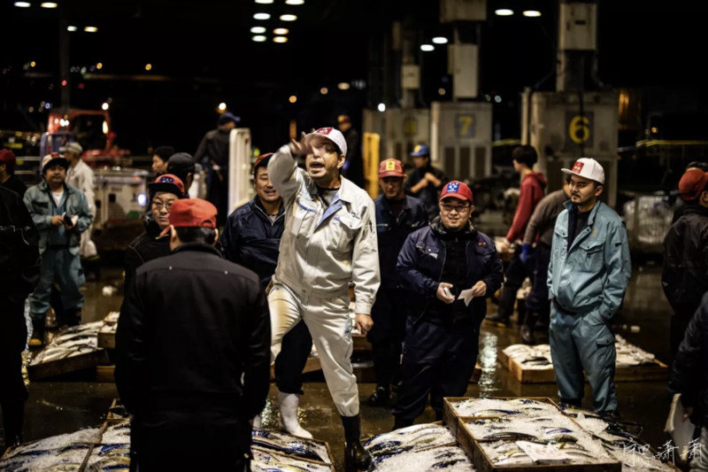 这张照片拍摄于福冈的渔市场。第一级代理白帽子在喊价格拍卖。为了表达现场的热烈,我使用了慢门,1/125秒的快门速度,可以凝固住所有人,但是凝固不住他手上的动作。这样可以增加现场感,烘托氛围。