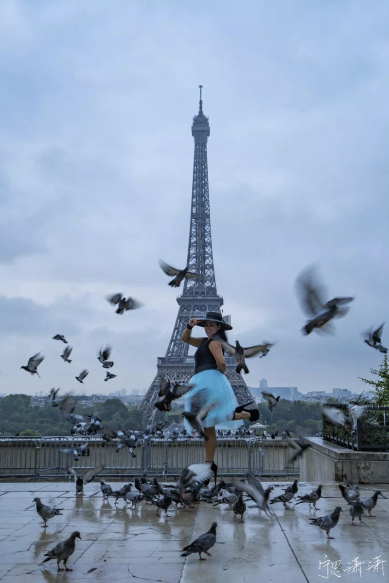 在这张照片中,铁塔是不动的,姑娘是几乎不动的。那么在画面中很自然就被拍摄清晰了。而鸽子几乎都是动的。动的快的,自然是飞着的;动的慢的,自然是走着的。在不太快的快门速度下(1/60秒),飞着的鸽子都虚了,尤其是翅膀。而慢慢走的还是清晰的。