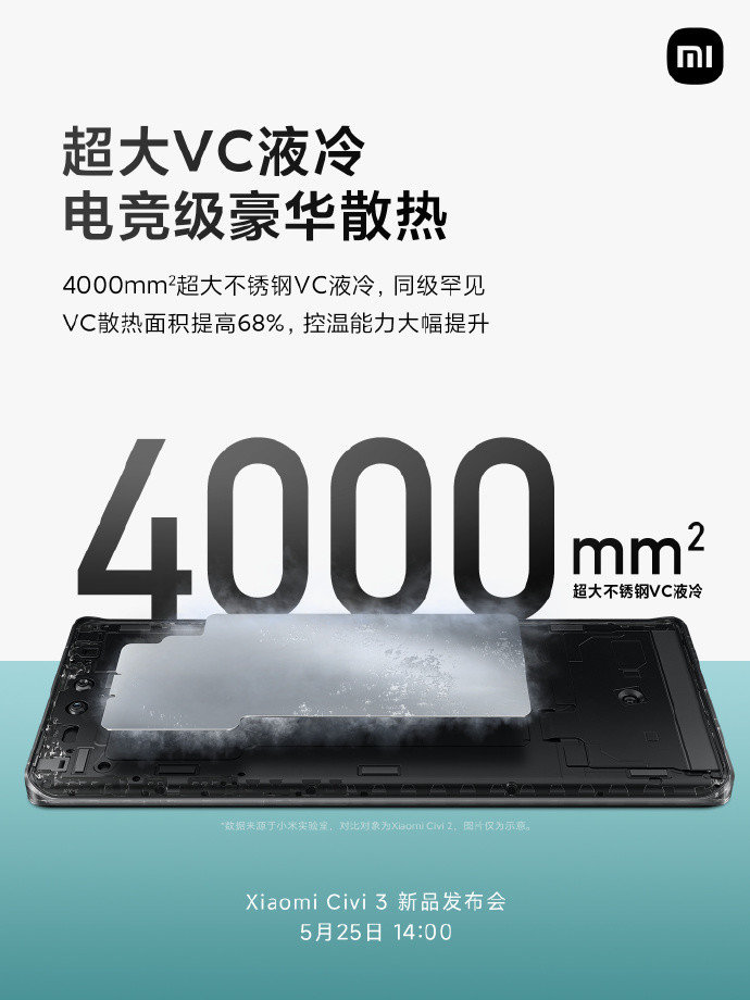 小米Civi3此次不光影像给力,性能散热也给力。天玑8200-Utra辅以4000m㎡面积VC液冷散热,游戏性能也不在话下。
