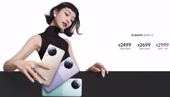 最后,全新小米Civi3 12GB+256GB 2499元,12GB+512GB 2799元,更带来超大16GB+1TB旗舰配置,2999元。
