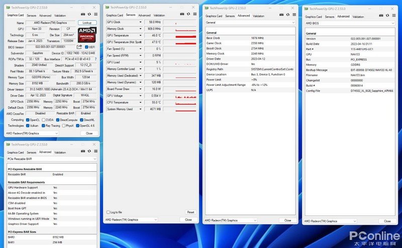 新版本的GPU-Z 2.53就已经能正确识别出Radeon RX 7600显卡的信息,包括GPU代号 Navi 33,6nm制作工艺,133百亿个晶体管,PCIe x8 4.0,GPU频率2356MHz,Boost频率2754MHz等都可以正确识别出。