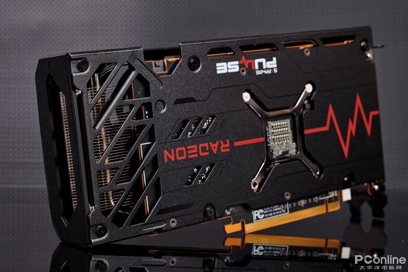 显卡的侧面和背板都做了大面积的镂空处理,一方面能够增加空气流动,提高热交换效率,另一方面增强了显卡整体的设计感。