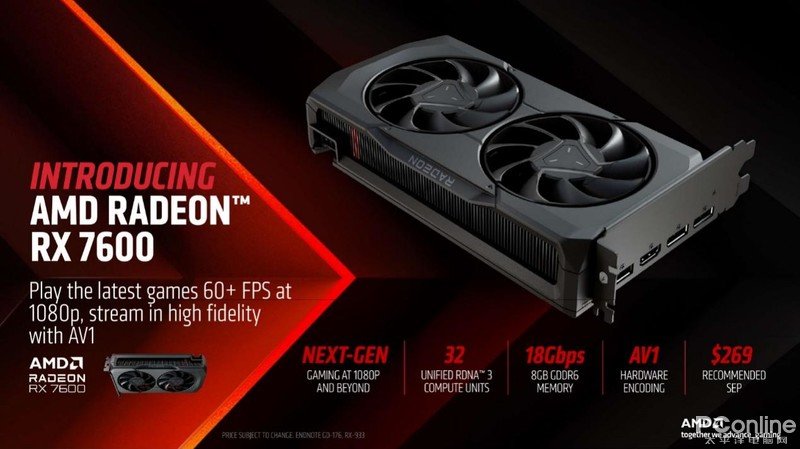 从去年12月份,AMD推出了基于全新RDNA3架构的Radeon RX 7900 XTX与Radeon RX 7900 XT显卡至今,已经过去了大半年的时间。这段时间里A卡可谓是相当的低调,反观隔壁老黄是有条不紊的推出了4070Ti,4070等显卡。不过终于,新的A卡也终于来了,而且是直接跳过了RX 7800、RX 7700中高端级别的显卡,直接推出甜点级显卡— —Radeon RX 7600显卡。