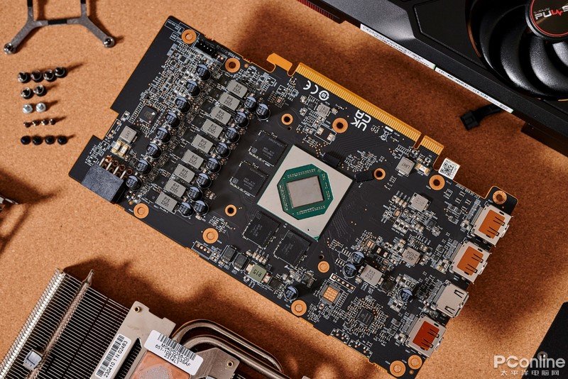 可以看到蓝宝石RX 7600白金版OC的PCB体积还是相对比较小巧的,元器件的布局相当工整。
