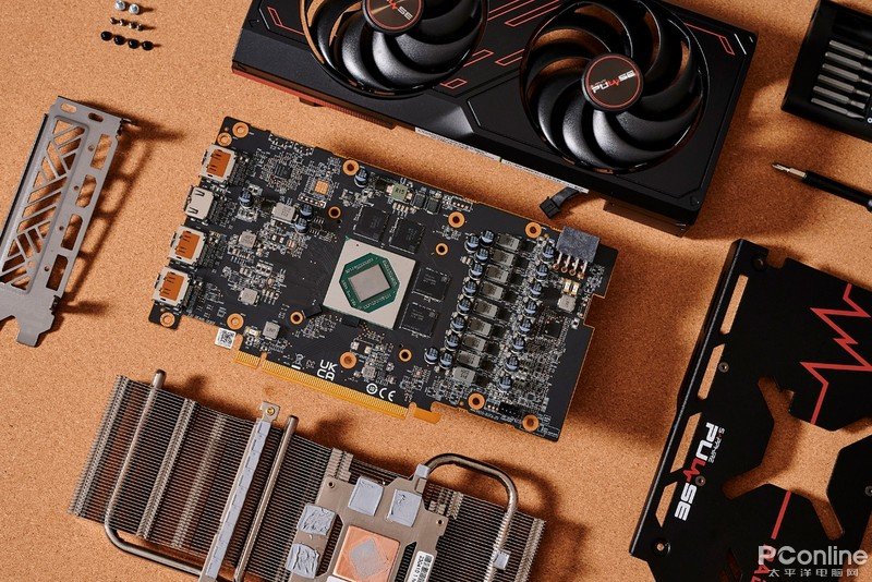 蓝宝石RX 7600白金版OC的拆解还是十分简单的,卸下背板上的螺丝就可以将散热风扇模组取下。在卸下背板上的扣具,则可以将整个散热模组取下。
