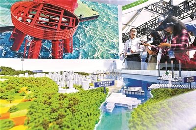 中关村论坛上展示的海洋风力发电的沙盘模型