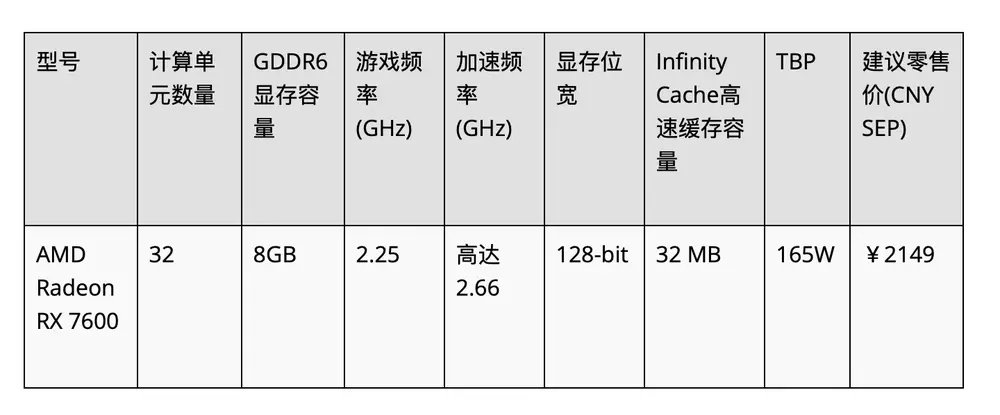 AMD Radeon RX 7600 显卡基于 RDNA 3 架构,采用重新设计的计算单元,具备统一的光线追踪和人工智能加速器以及第二代 AMD Infinity Cache 高速缓存技术。Radeon RX 7600 显卡旨在提供 1080p 游戏体验,为众多游戏玩家提供了一个理想的升级选择。