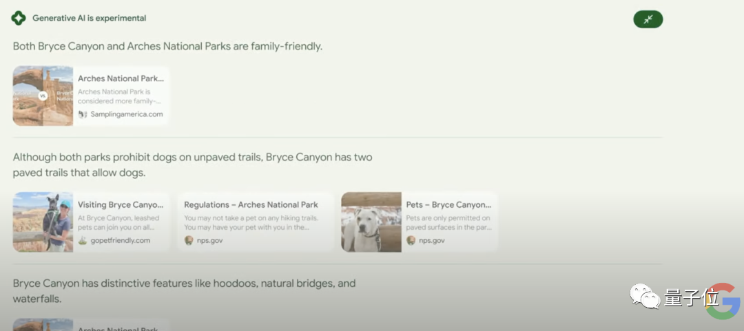 而这边百度刚刚官宣完,谷歌紧接着就开放了AI搜索,之前排队的一些用户可以用上了。