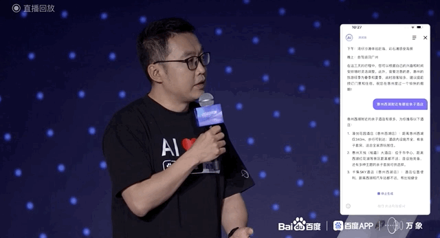 百度演示了一个黄景瑜的AI助理,声音高度还原,能回答各种问题、日常聊天,而且可能具备联网能力或者数据库比较新。