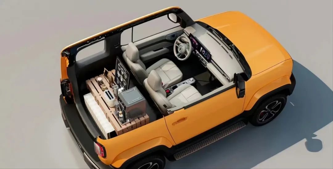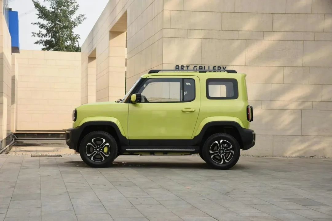 侧面双门造型短小精悍,显得十分呆萌,门把手有几分复古的元素。高凸起轮眉越野属性拉满,侧裙配有宽厚踏板;车顶还搭载了黑色行李架,兼具视觉效果与实用性。