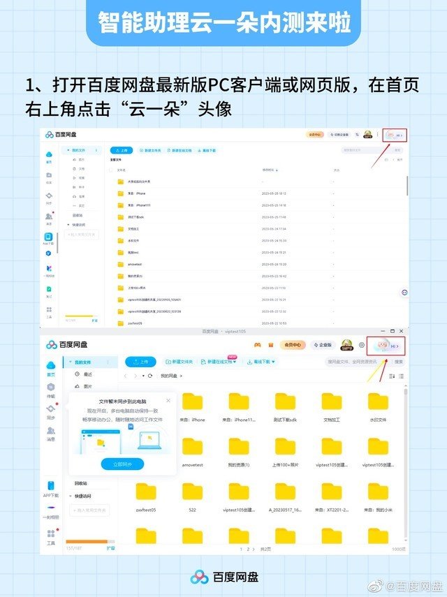 5 月 26 日消息,百度网盘宣布,即日起,百度网盘云一朵智能助理开启内测,云一朵将为大家带来全新的交互和体验。