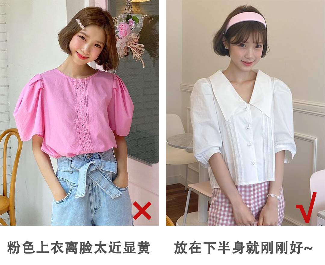 最经典的配色是黑白、红白和蓝白,想要少女一点可以像欧尼一样选择浅色系搭配白色,比如浅黄、果绿、浅紫....