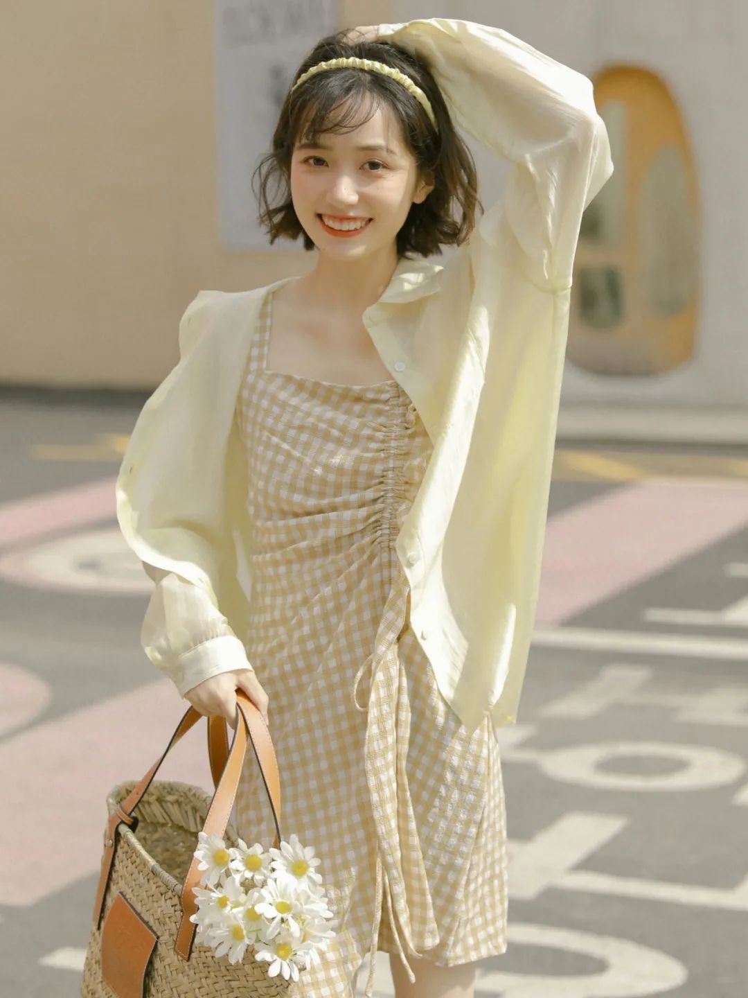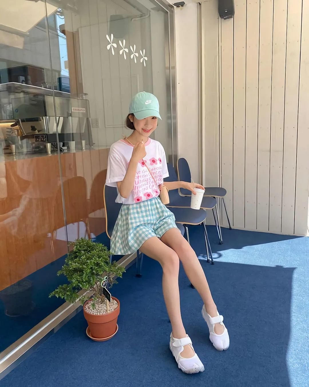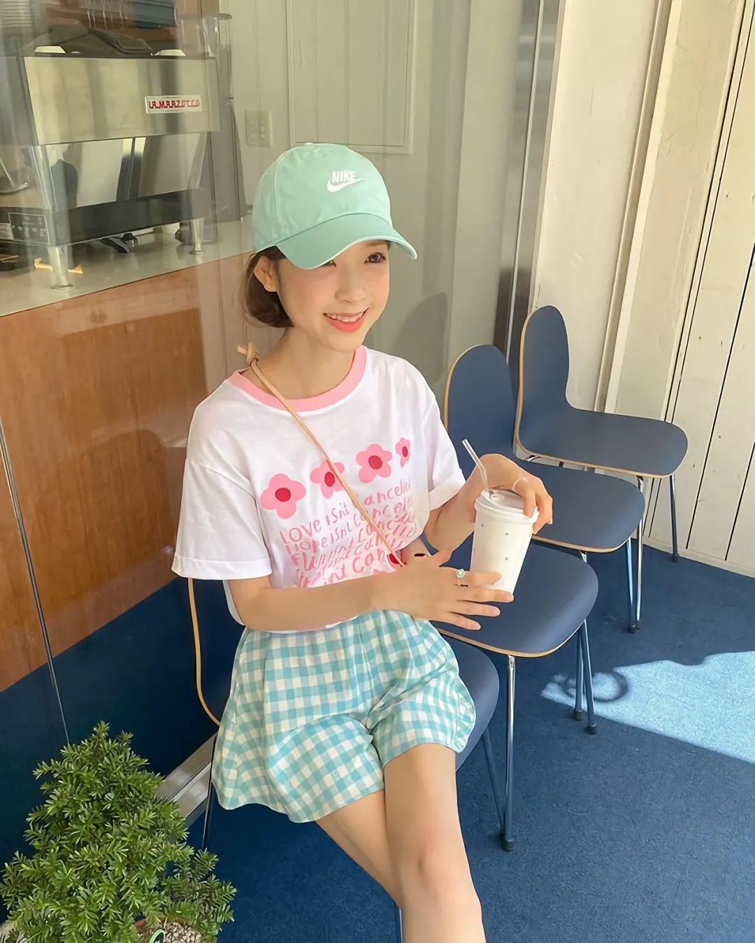 夏天担心穿格纹会显沉闷,可以选择像欧尼身上这种少女清新的维希格纹。维希格纹在上世纪五六十年代就很流行了,奥黛丽赫本就很喜欢穿,现在看来依旧很chic!