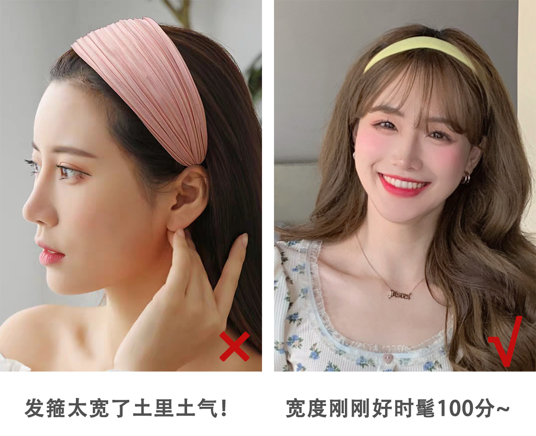 脸大的姐妹挑选发箍的时候要挑选一指宽/两指宽的(类似欧尼那种),不能超过两指宽!