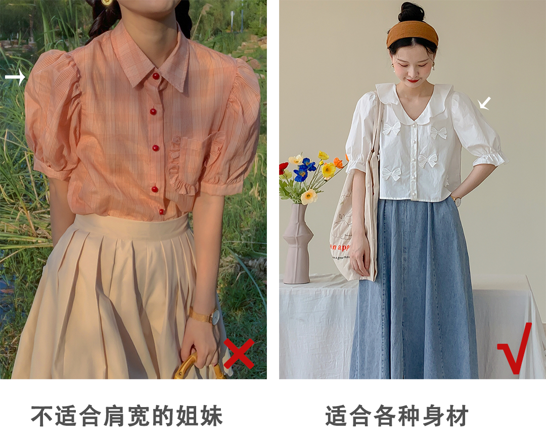 泡泡袖可以遮手臂的肉肉我就不多说喇~还可以增加肩膀的宽度,优化头肩比,对我们小个子窄肩的姐妹就很nice~