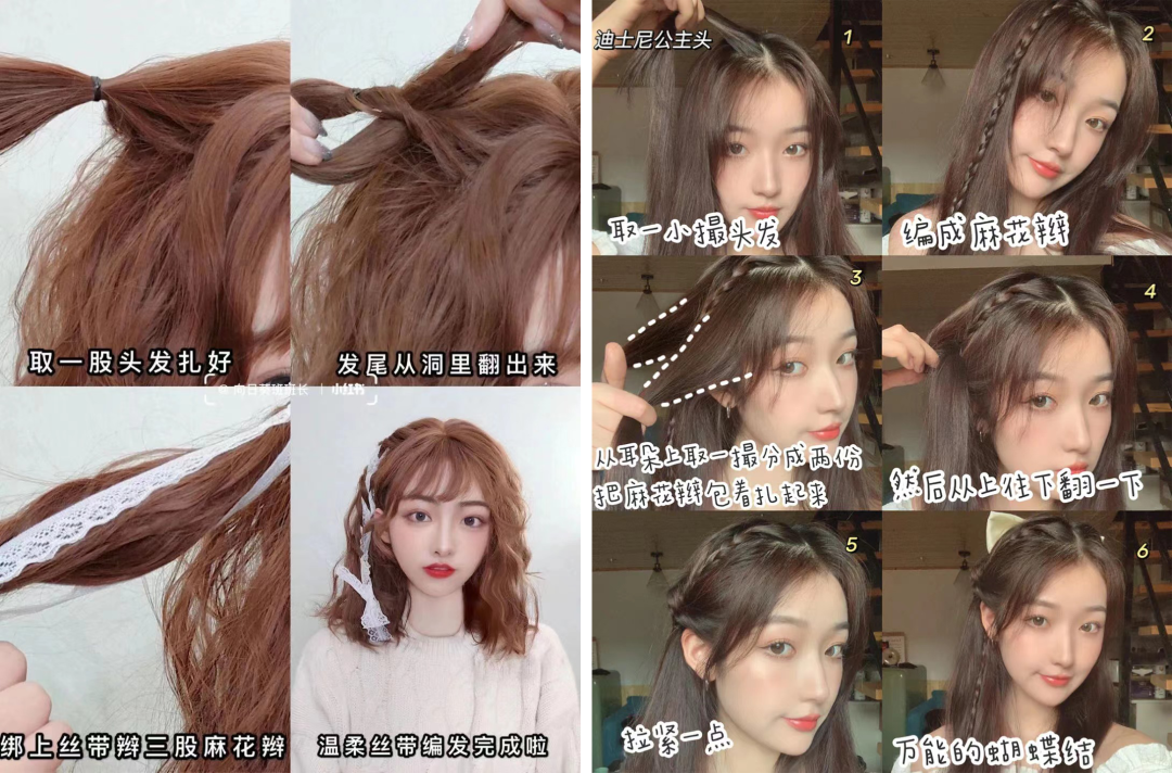 第一款适合中短发的姐妹,只需要用到丝带就可以打造的氛围感编发~第二款是适合长发姐妹的迪士尼在逃公主编发!