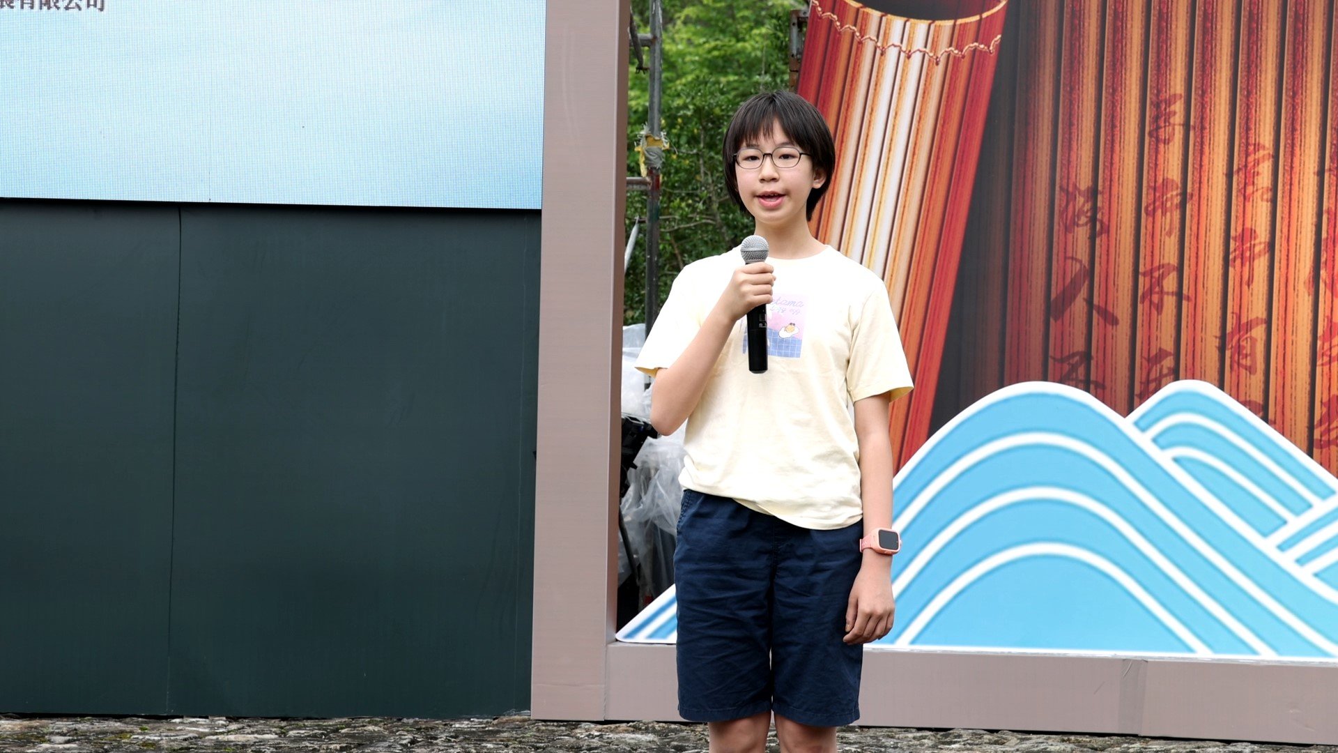 5月27日上午,在第四届全国(盖苍山)童诗文化节上,来自福建省的小诗人王妍在宁海盖苍山下的力洋孔村,登上舞台,声情并茂地朗诵她的一等奖作品——《野风车》。