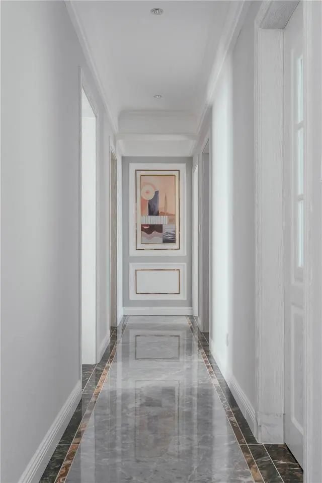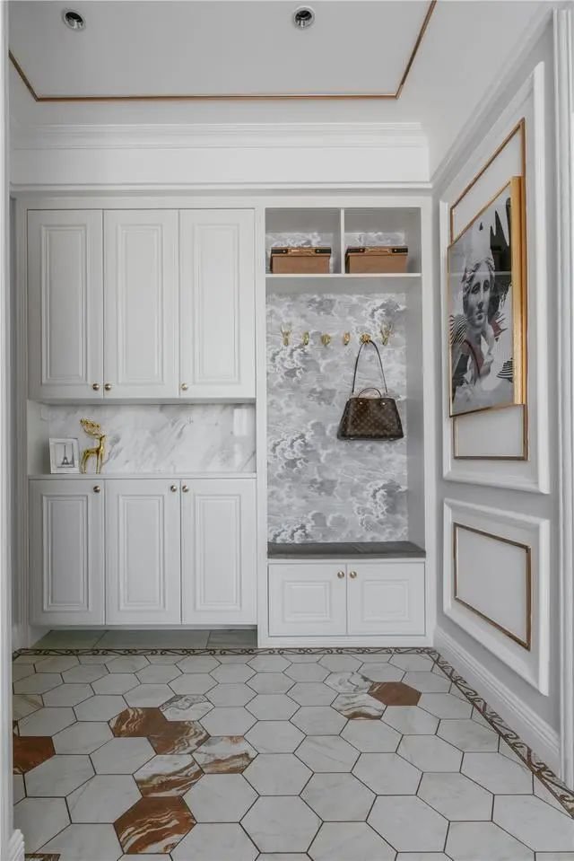 单看这个玄关我们就可以感受到这个装修的轻奢范,不管是格局的布置还是硬装的设计以及颜色的搭配,都着实不错,透着满满的轻奢范!