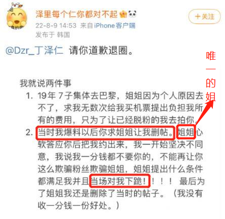 有这么给力的站姐和粉丝,丁泽仁没有借东风乘势而上,反倒将“唯一的姐”以及粉丝们当成胡作非为的底气。